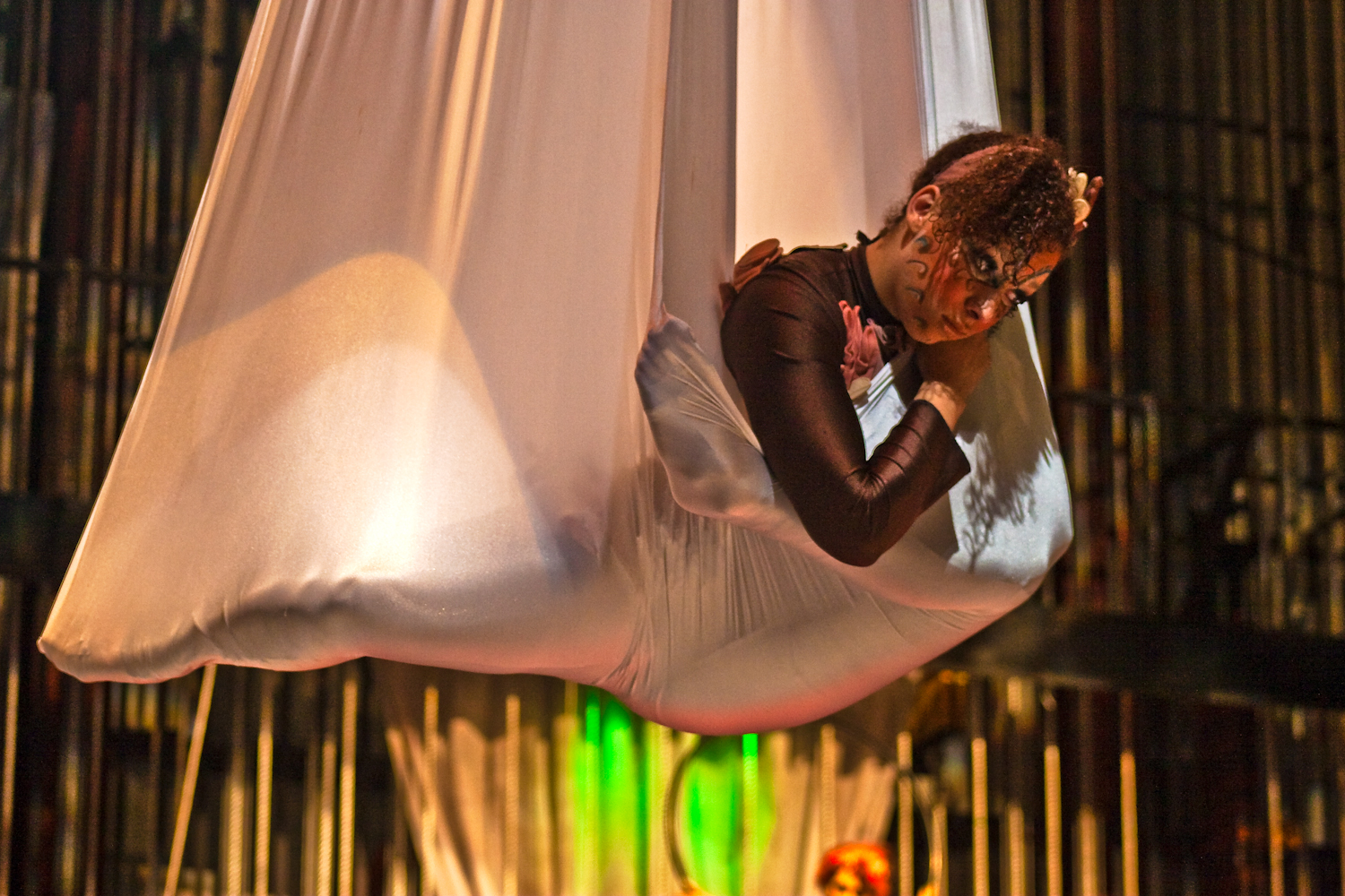 These are a few of the production photos I took for University of Central Missouri’s production of The Birds. Due to the nature of multiple things happening on stage at once and the use of acrobatics (the birds flew across the stage, meaning that even certain staged shots had to be moving), I asked Dr. Mollenkamp (the director), if my fiance, Isaac Flint, could help me out in shooting these production shots. Since he’s more familar with the Rebel XS, I shot with the 30D. I gave him the shorter lens, letting him take the wider, full scene shots, whereas I went for the more troublesome closeups. I think about thirty of the hundred-some pictures I turned in to the threatre were shot by him.