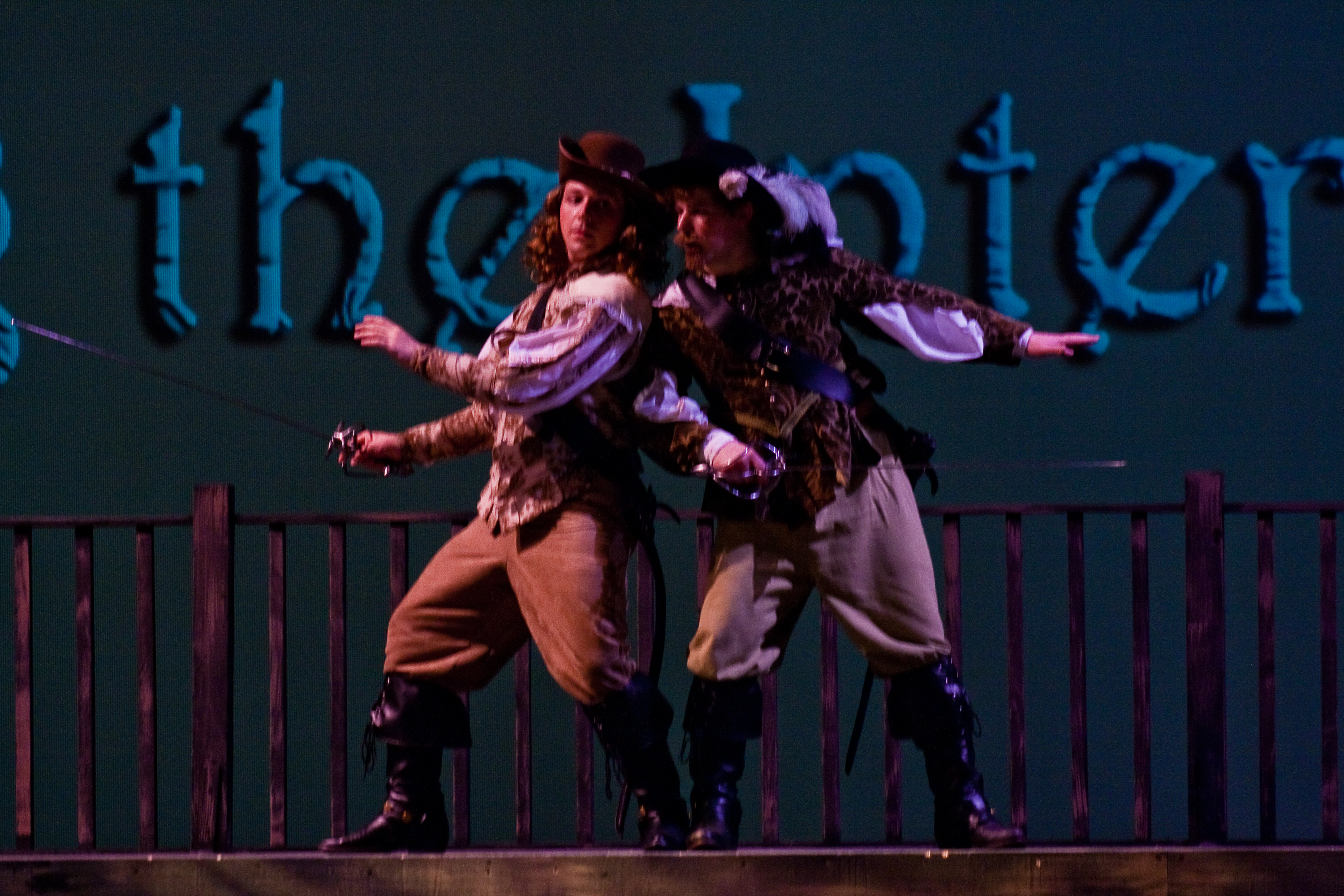 These are some of the pictures from UCMO’s Three Musketeers production. My fiance, Isaac, helped me shoot production photos. He took the wide shots, while I used the telephoto lens. I’ve often found that it is helpful to work with him on these photoshoots—it helps speed up the time and also keeps me from carrying two cameras or switching back and forth between lenses.